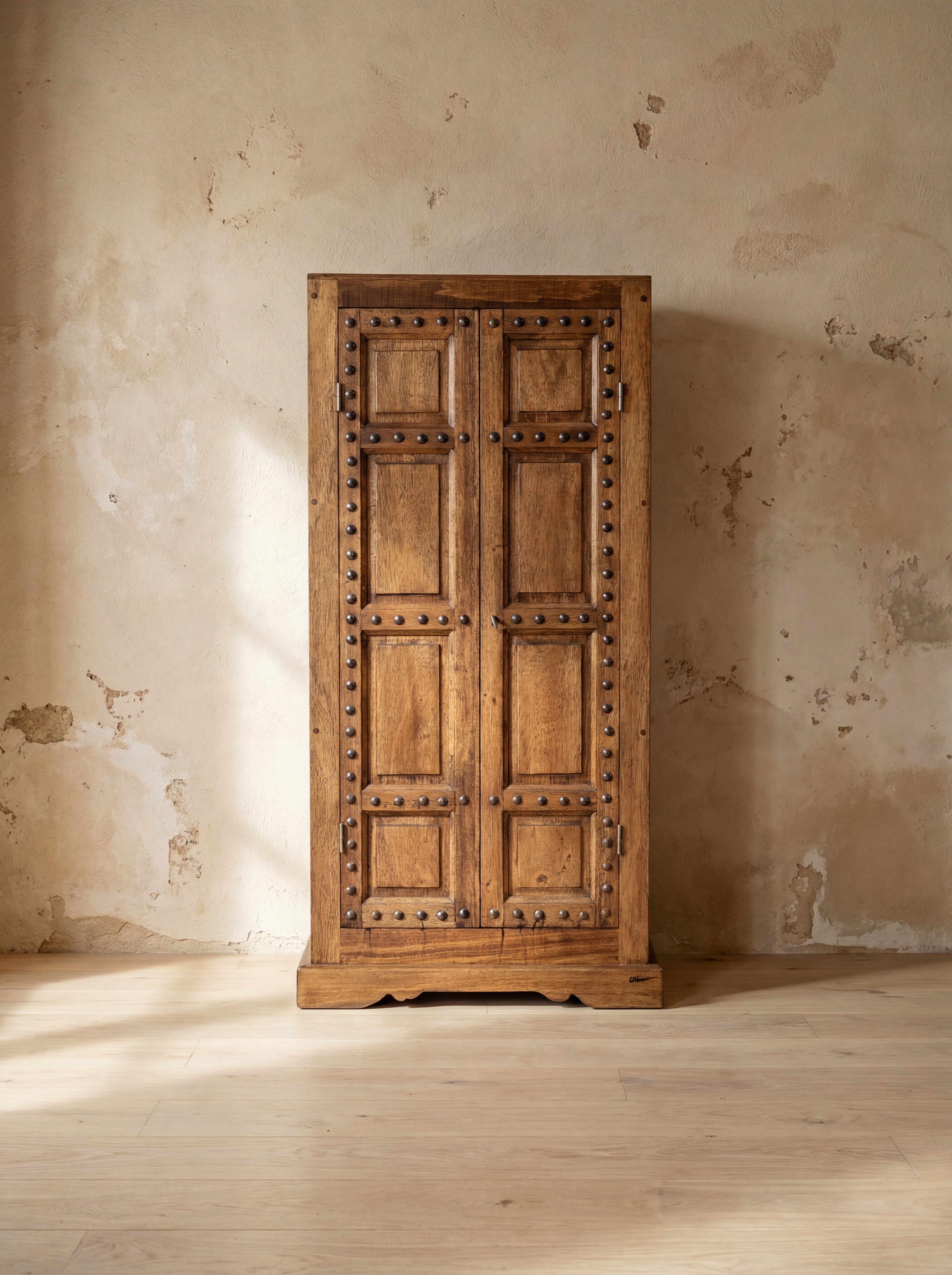 Collection Élégance brute et bois chantourné – Armoire cloutée